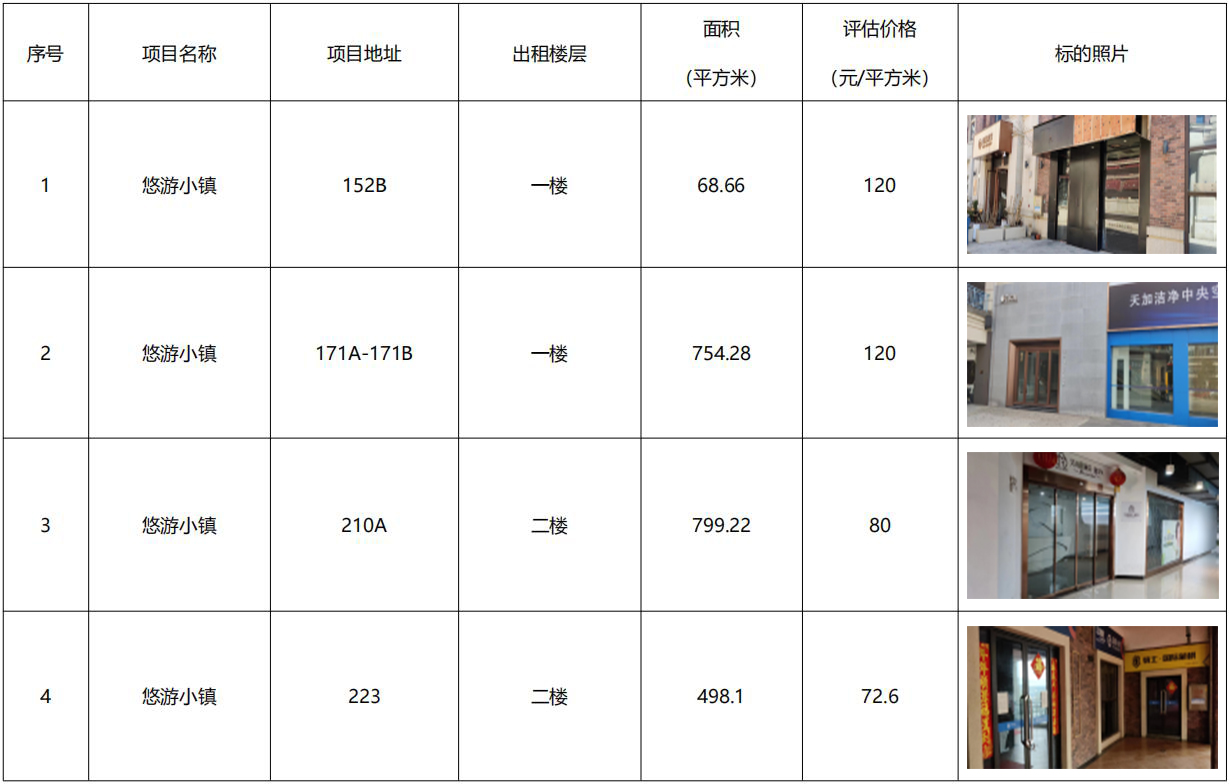 本次招商共計(jì)四處房產(chǎn),相關(guān)信息如下表所示: